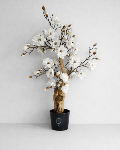 Our artificial trees are crafted using a combination of a real wood tree trunk and high-quality artificial flowers that remain in eternal bloom. This combination creates a lifelike and visually appealing representation of a tree that maintains its beauty indefinitely. The real wood trunk provides a natural and authentic base, while the premium artificial flowers ensure a perpetual state of blossoming, allowing the tree to retain its vibrant appearance over time.