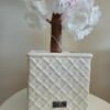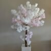 Artificial cherry blossom tree, 1.2m tall, presented in an elegant white ceramic pot with decorative white stones and integrated LED lighting.
