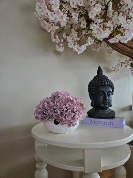 Our Fall flower collection blends soft pastel blooms with elegant ceramic “moon” pots. Featuring real-touch hydrangeas made from high-quality latex, each arrangement looks and feels just like fresh flowers. Minimal and timeless, these pieces fit beautifully in any interior—from living rooms to bathrooms—bringing a touch of calm elegance to your space