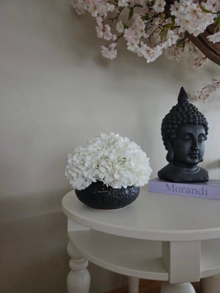 Our Fall flower collection blends soft pastel blooms with elegant ceramic “moon” pots. Featuring real-touch hydrangeas made from high-quality latex, each arrangement looks and feels just like fresh flowers. Minimal and timeless, these pieces fit beautifully in any interior—from living rooms to bathrooms—bringing a touch of calm elegance to your space